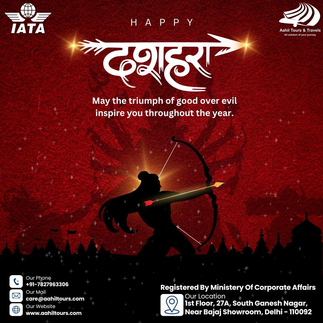 At Aahil Tours & Travels, we believe every journey is a new beginning . This festive season, let the blessings of Dussehra guide you towards success, happiness, and memorable adventures with your loved ones.