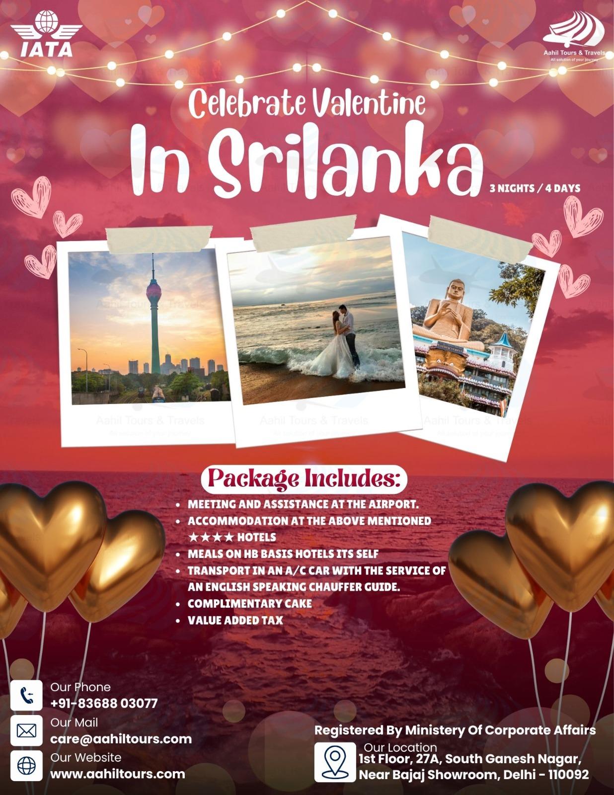 Make this Valentine truly unforgettable with a *3 Nights / 4 Days dreamy Sri Lanka getaway*. Explore breathtaking beaches, scenic city views, and cultural charm while enjoying *comfortable hotels, airport assistance, private AC transport with English-speaking chauffeur, delicious meals, and a complimentary Valentine cake*.