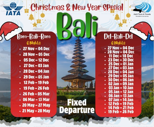 Enjoy stunning beaches, vibrant culture, and unforgettable experiences on the Island of Gods. Limited seats available—book early and make your festive getaway truly magical!