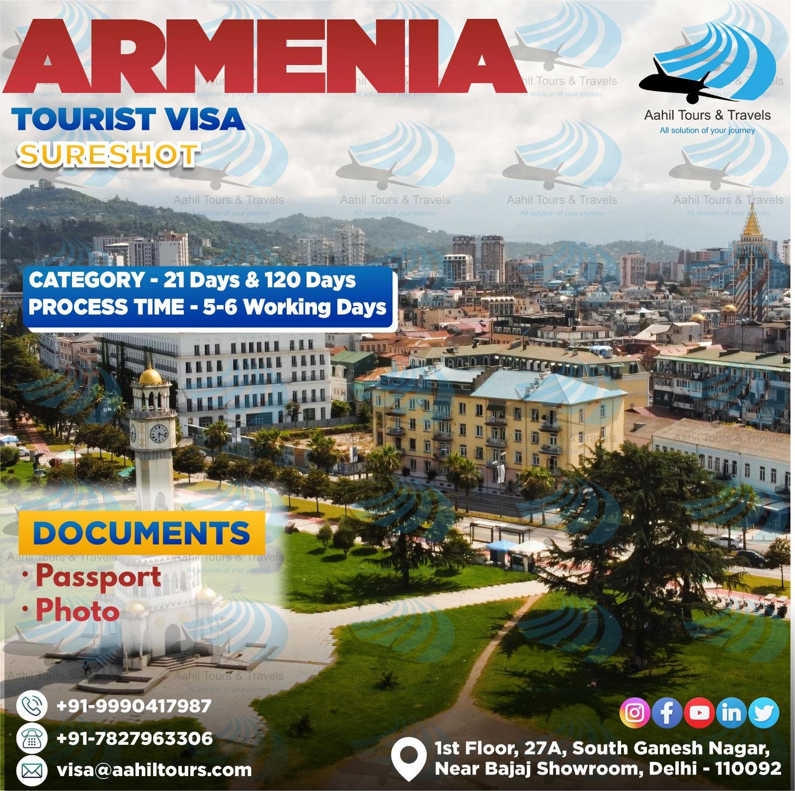 Explore Armenia with Ease! 🇦🇲 Get your Armenia Tourist Visa in just 5–6 working days with Aahil Tours & Travels. Choose from 21 Days or 120 Days Visa — simple process, fast approval & guaranteed support! Book your visa today and start your Armenian adventure hassle-free! 📞 Contact us https://wa.me/917827963306