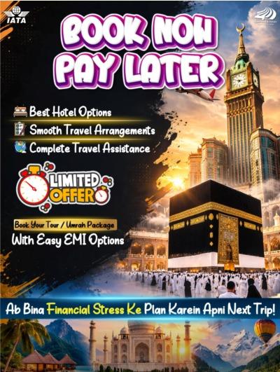 Limited time offer – pehle travel karein, baad me easy installments me payment karein. Aapka safar hum banayenge easy, comfortable aur memorable.